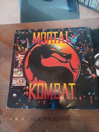 Vinilo del videojuego Mortal Kombat. Presenta el icónico logo del dragón y arte del juego. Escucho ofertas. Si buscas algún vinilo especial pídemelo. Año 93 - Portada con arte de Mortal Kombat. - Incluye imágenes de personajes y escenas del juego.
