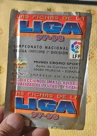 Sobre cerrado de las fichas de La Liga de la temporada 97-98. - Colección oficial de tarjetas. - Incluye el logo de LFP.