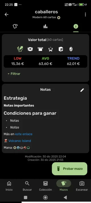 Mazo de Magic: The Gathering de caballeros, formato Modern, listo para jugar. Ahorra un montón de gastos de envío y esperas comprando este mazo y úsalo directamente para ganar algunas partidas o para regalar. Mazo bastante divertido y potente para echar unas pachangas. Todas las cartas NM o EX+, todas las tierras fullart. No incluye banquillo (no lo necesitas tampoco). Todo español o inglés. Se entrega con fundas y deckbox (última foto). NO SEPARO CARTAS Magic the gathering mtg album lote colección collector mox opal lotus
