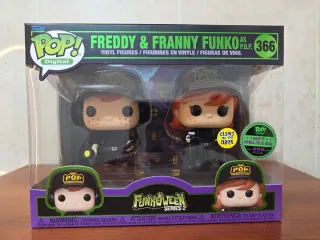 Figura coleccionable Funko Pop! Digital de Freddy y Franny Funko. En buen estado. - Edición limitada de 499 piezas. - Brilla en la oscuridad (Glows in the Dark). - Parte de la serie Funkoween Series 2. - Incluye protector duro imantado.