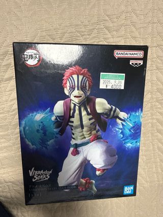 Figura de Akaza de la serie Demon Slayer, parte de la línea Vibration Stars. - Diseño inspirado en el anime. - Fabricada por Banpresto (Bandai Namco). - Incluye efectos de energía azul.
