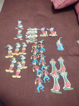 Lote de figuras de plástico troquelado de personajes de Disney. - Incluye a Mickey Mouse, Donald y Goofy. - Diseños variados de los personajes. - Material plástico resistente.se venden a 15 euros unidad