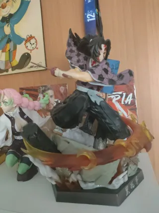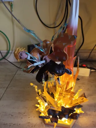 Figura detallada de Tanjiro con un impresionante dragón de fuego. - Diseño dinámico con efectos de llamas. - Luces LED integradas para un efecto luminoso. - Base sólida para exhibición.