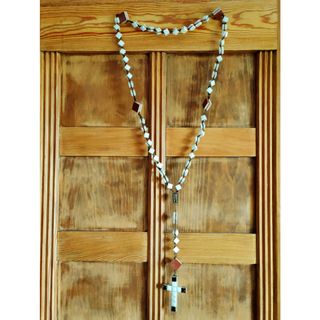 Rosario antiguo de pared hecho en teselas de mosaico. Largo: 85 cm