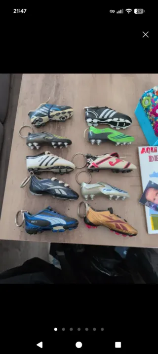 Colección de llaveros con forma de botas de fútbol, inspirados en el Real Madrid. - Diseño detallado de botas de fútbol. - Incluye varios modelos y marcas deportivas. - Ideal para aficionados al fútbol y coleccionistas.