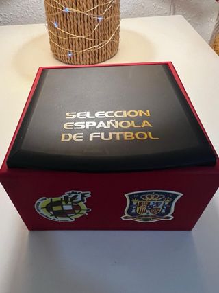 Reloj de colección de la Selección Española de Fútbol. - Presentado en una caja negra con detalles dorados. - Diseño con esfera temática. - Correa metálica.