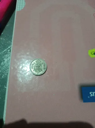 Moneda de 5 pesetas acuñada en el año 1957. Presenta un error de acuñación. - Año: 1957 - Denominación: 5 Pesetas - Característica: Error de acuñación
