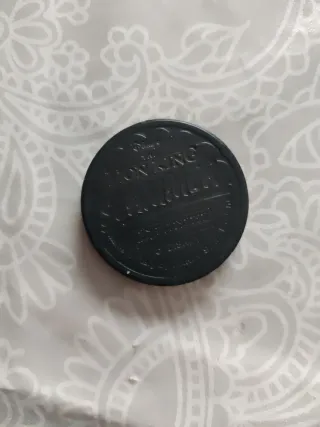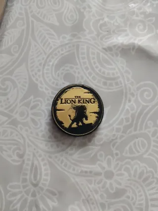Tazo coleccionable de la película El Rey León. Presenta un diseño circular con el logo y la silueta de Simba. - Diseño temático de El Rey León. - Acabado metálico dorado y negro.