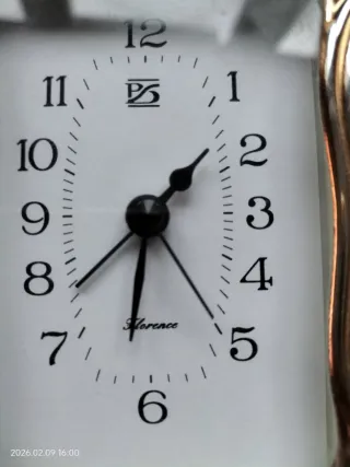 Elegante reloj de sobremesa Florence, con un diseño único que combina plata y madera. Funciona también como despertador. - Marco de plata con detalles. - Base de madera. - Esfera con números romanos y manecillas. - 13cm alto, 10cm ancho, 2 cm profundo. - funciona perfectamente con 1 pila normal.