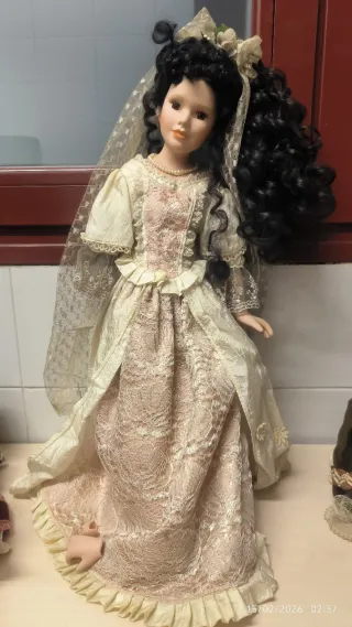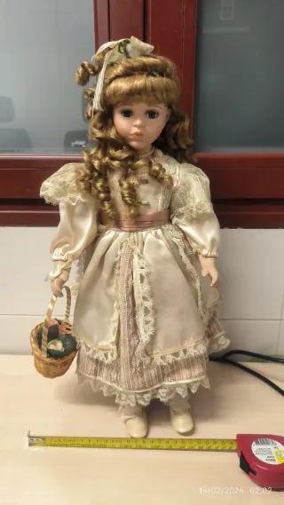 Muñeca de porcelana decorativa de 40 cm. -Vestido completo con detalles y accesorios originales. -En buen estado, sin golpes ni desperfectos visibles. -Ideal para decoración o regalo. -Entrega en mano