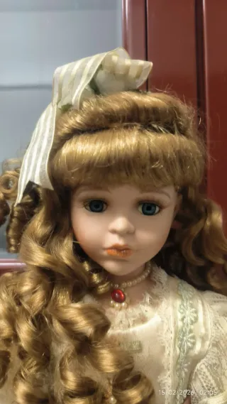 Muñeca de porcelana decorativa de 40 cm. -En buen estado, sin golpes ni desperfectos visibles. -Vestido completo con accesorios. -Ideal para decoración o colección. -Entrega en mano.