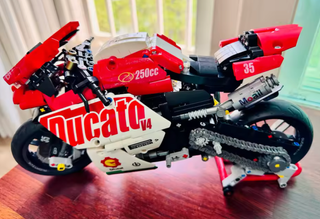 Hermoso juego de bloques de construcción de motocicleta V4, Kit de modelo de súper motocicleta. - Incluye pegatinas para diseño. - Instrucciones para ensamblaje. - Medidas del producto (altura 19,6cm, largo 32,6cm).