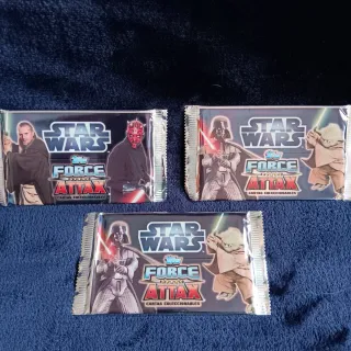 Lote de cartas coleccionables de Star Wars Force Attax. - Incluye varias cartas. - Temática de Star Wars. Son tres sobres completamente nuevos, precintados de la compañía Topps