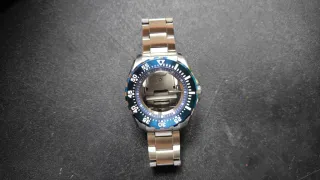 Caja y armis de acero inoxidable para relojes diver Seiko con movimiento Seiko NH35, nh36 y similares - Caja de acero. - Armis de acero. - Cristal frontal zafiro - Cristal trasera mineral - 44 mm sin contar corona - Incluye corona y tija