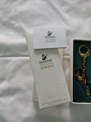 Llavero de la colección Swarovski Crystal Memories con diseño de golf. La bolsa de golf está hecha de cristal Swarovski facetado y la base y los palos en baño dorado. Original Swarovski; conserva sus dos cajas de embalaje y su librito de la colección Crystal Memories. Totalmente nuevo y en perfectas condiciones.