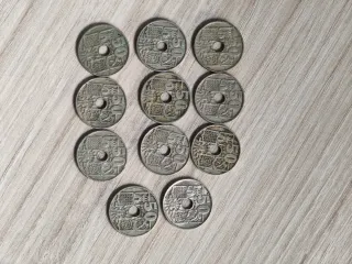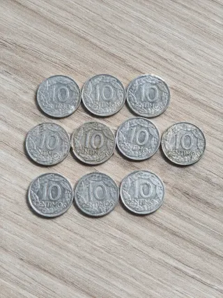 Monedas de 10 céntimos de peseta española, año 1959. Conocidas popularmente como perras chicas. - Año: 1959 - Valor: 10 céntimos de peseta