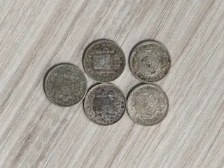 Conjunto de cinco monedas de 50 céntimos de Alfonso XIII. - Anverso: Retrato de Alfonso XIII. - Reverso: Escudo de España. - Ceca: Madrid (M). - Años: 1892, 1899, 1900, 1904, 1904.