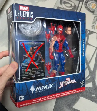 Figura de acción de Spider-Man de la serie Marvel Legends sin sacar del embalaje. NO incluye la carta coleccionable. - Figura de Spider-Man con diseño detallado.