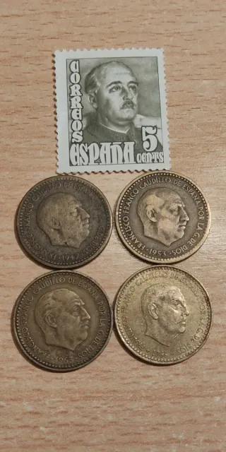 Las 4 Pesetas de Franco 1947-53-63-66 + sello