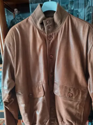 Cazadora de piel estilo aviador, inspirada en los pilotos de los años 20. Un diseño clásico y atemporal. - Material: Piel. - Cuello alto acanalado. - Cierre de botones. - Dos bolsillos frontales con solapa y botón.
