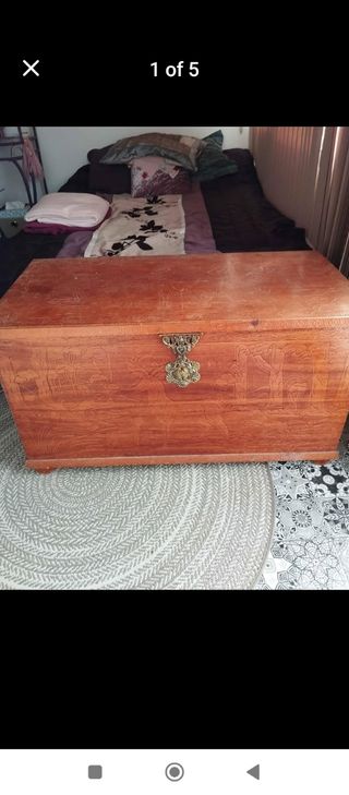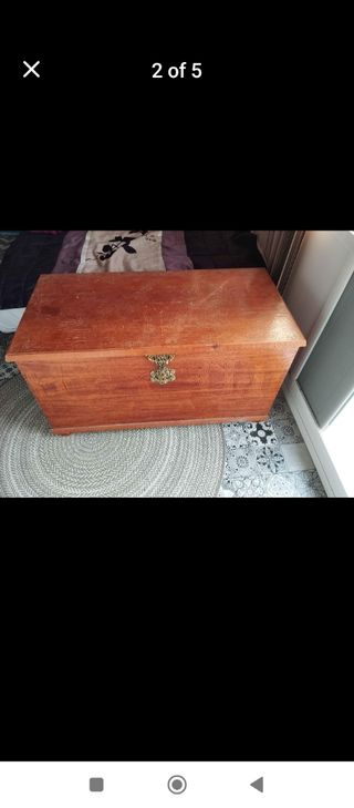 Este cofre de madera maciza es una pieza vintage con un diseño único. - Material: Madera maciza - Estilo: Vintage - Decoración tallada en relieve.Beautiful solid wood...Long 99 cm W 48 cm H55 cm
