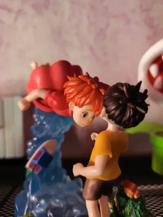 Figura de Ponyo, personaje icónico de Studio Ghibli. Figura de la escena más mítica de la Película. - Diseño detallado. - Base temática de agua y vegetación.