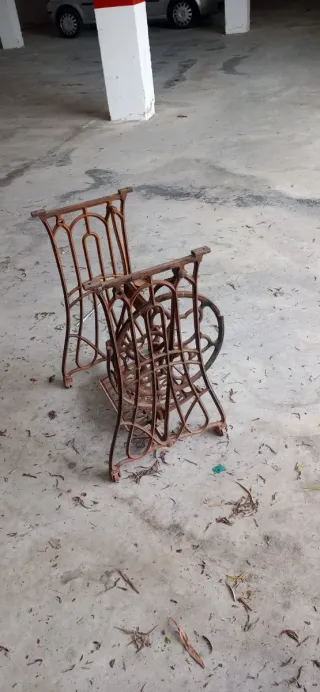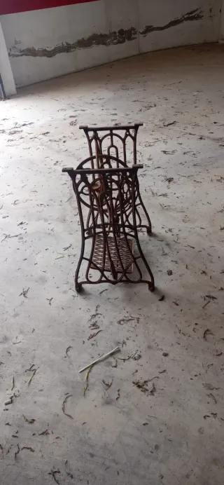 Mesa antigua de hierro fundido, ideal para máquinas de coser. - Diseño ornamental. - Estructura robusta.