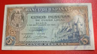 Billete 5 Pesetas España 1940 Banco de España