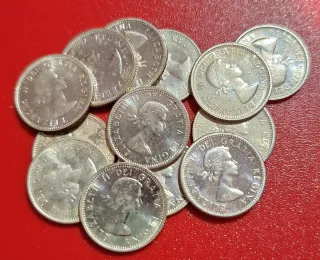 13 Monedas 10 Centavos, Canadá 1963-1964. PLATA.
