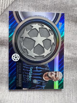 Carta conmemorativa Starball de Topps de la temporada 2025/2026. - Jugador: Federico Dimarco. - Equipo: FC Internazionale Milano. - Diseño: Starball Commemorative Relic.