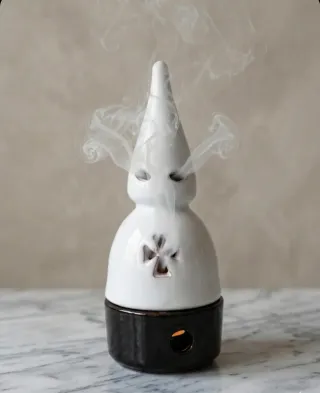 Incensario con forma de nazareno, elaborado en barro. - Diseño tradicional. - Base oscura. #inciensario #quemadordeincienso #nazareno #semanasanta #cofrade #artesania #barro #ceramica #decoracion #incienso #penitente #capuchon #decoracionhogar #articulocofrade