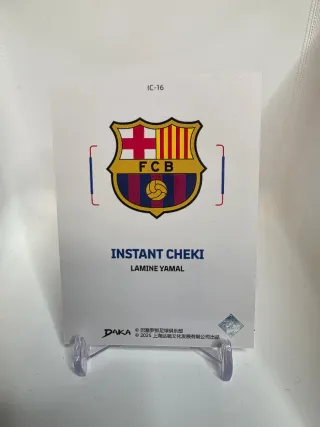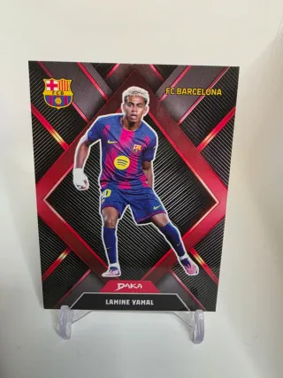 Tarjeta de colección de Lamine Yamal del FC Barcelona. - Diseño Daka. - Incluye escudo del FC Barcelona. - Nombre del jugador: Lamine Yamal.