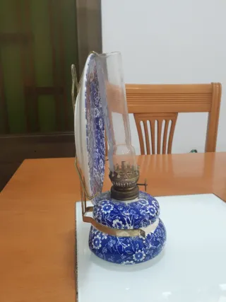 Lámpara de aceite o quinqué vintage azul