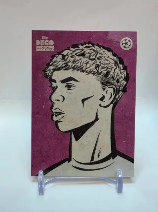 Tarjeta de colección Topps Deco Artistry de Lamine Yamal. - Diseño artístico. - Ilustración de Lamine Yamal. - Serie Deco Artistry.