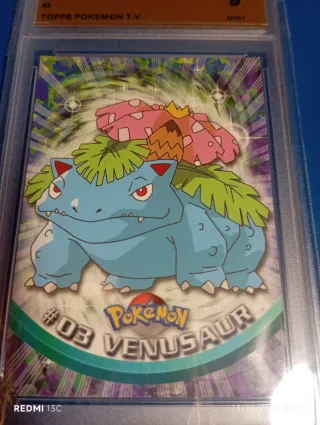 Colección de 4 cartas Pokémon de Topps TV del año 1999. - Carta #03 Venusaur, Grado 9 Mint. - Carta #07 Squirtle, Grado 9 Mint. - Carta #08 Wartortle, Grado 8 NM-Mint. - Carta #106 Hitmonlee, Grado 10 Gem Mint.