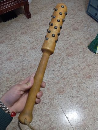 Maza de madera con un diseño rústico y robusto, adornada con clavos metálicos. Precio negociable - Material: Madera. - Decoración: Clavos metálicos incrustados. - Cuerda para colgar. cuchillo daga puñal machete espada sable katana hacha lanza estoque antiguo colección militar caza edc bushcraft defensa cold steel benchmade spyderco crkt zero tolerance kershaw gerber Emerson Chris reeve