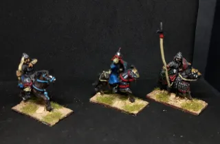 Conjunto de miniaturas de caballería mongola, listas para jugar. - Figuras detalladas de guerreros a caballo. - Incluye lanzas, escudos y arcos - Baseadas individualmente.
