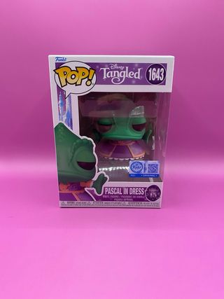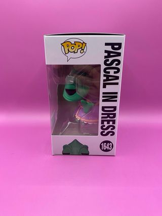 Figura Funko Pop de Pascal, el camaleón de Enredados, vestido con un traje morado. - Número de modelo: 1643. - Personaje: Pascal. - Película: Disney Tangled (Enredados). - Tipo: Figura de vinilo.