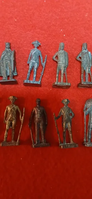 Conjunto de figuras antiguas de soldados, detalladas y con bases individuales. - Figuras de metal con acabados variados. - Representaciones de figuras históricas. - Ideal para coleccionistas. -Creo recordar q salían en huevos Kinder. ESCUCHO OFERTAS
