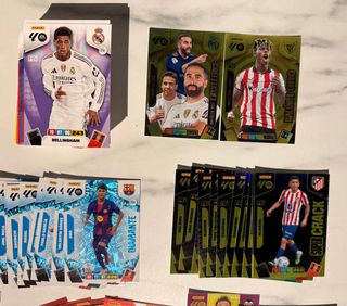 Colección de cartas sueltas de Adrenalyn XL de la temporada 25-26. Normales,escudos y estadios-0,20€ Especiales nivel 1 vamos,guantes de oro, kriptonita,diamantes,influencers y protas- 0,45€ Especiales nivel 2 super crack -0,65€ - Cartas individuales de la colección. - Variedad de jugadores y equipos.