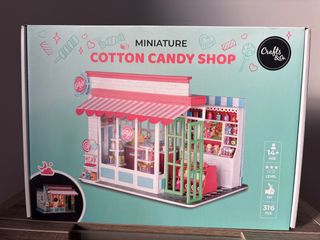 Casa de miniatura de madera. - Diseño de tienda de algodón de azúcar. - Incluye 316 piezas. - Recomendado para mayores de 14 años. - Nivel de dificultad: 3 estrellas. - Con precinto, esta sin abrir.