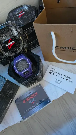 Reloj G-Shock en color morado, ideal para uso diario y actividades deportivas. Incluye su caja original y manuales. - Modelo G-Shock. - Color morado. - Incluye caja y tarjeta de garantía internacional.