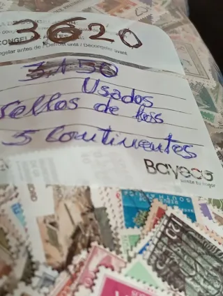 Lote de 3600 sellos usados de 5 continentes. - Sellos de diferentes países y épocas. - Ideal para coleccionistas.