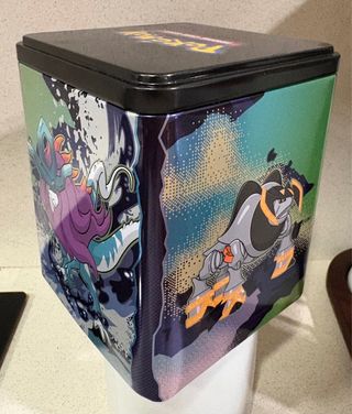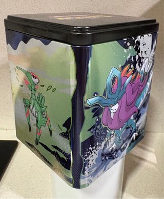 Caja metálica de colección de Pokémon, vacía. Ideal para guardar tus cartas o como pieza de coleccionismo. - Diseño con ilustraciones de Pokémon. - Tapa negra. - Forma cuadrada