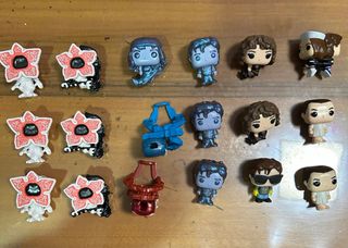 Colección de figuras de Kinder Joy de Stranger Things. Incluye varios personajes y accesorios. - Figuras de Demogorgon. - Figuras de Eleven. - Figuras de Dustin. - Figuras de Steve.