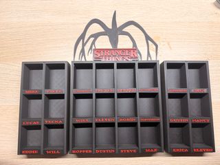 Estantería / expositor para figuras de Stranger Things de Kinder Joy, fabricada mediante impresión 3D. Diseñada para mantener las figuras ordenadas, visibles y bien presentadas, ideal para coleccionistas. Los nombres se pueden colocar donde tú quieras (arriba, abajo, laterales o zonas concretas de la estantería). 📦 Características: Capacidad para hasta 24 figuras Material resistente (PLA) Diseño estable y limpio Hecho a medida con impresora 3D 📌 Las figuras NO están incluidas, solo la estantería Si esta interesado no lo compre en este anuncio me escribis que esta interesado i creo un anuncio solo para vosotros