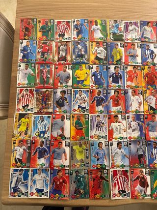 Colección de cromos de fútbol de la colección Panini. - Incluye cromos de jugadores como Ronaldinho, Chiellini, Ballack, Piqué, Di María, Daniel Alves, Agüero, Forlán, Pandiani, Valdés y Julio César. - Cada cromo muestra la foto del jugador, su nombre y estadísticas. Consultar precio.