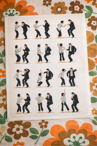 Póster inspirado en la icónica escena de baile de Pulp Fiction. - Ilustración de alta calidad. - Diseño con personajes de la película.