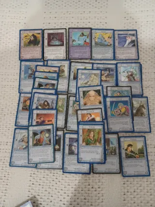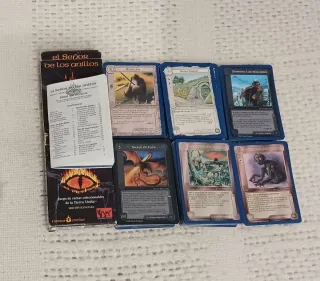 Set de 264 cartas de El Señor de los Anillos de Tierra Media (Joc Internacional). Incluye el libro de reglas y dos cajas para barajas. - Incluye cartas con borde negro y la revisión en azul (estas últimas están en muy buenas condiciones). - Hay cartas repetidas. - Detalle: 35 criaturas (incluyen los 5 magos) 41 localizaciones 58 recursos 35 recursos-objetos-aliados 37 adversidades 58 adversidades-criaturas - Incluye lo esencial para empezar a jugar. Pide más fotos o detalles, si es necesario.