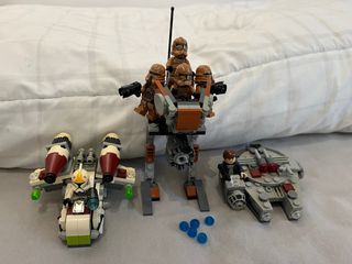 LEGO Starc Wars Geonosis Battle pack + microfighters de Han Solo y Clone Trooper. Sin instrucciones, están tal cual como en la imagen. Alguno un poquito colorido por el sol pero nada no solucionable.